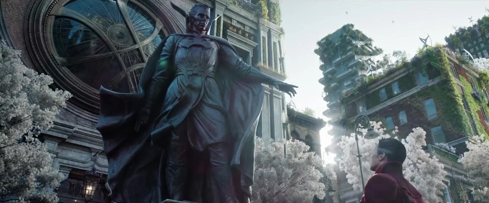 4. **Невозможные физические действия:** В сцене, где Стрэндж и Америка падают из здания Камар-Таджа в альтернативную вселенную, можно заметить несоответствие с законами физики. Их падение происходит с невероятно большой высоты, и они приземляются без серьезных последствий. В реальности такое падение должно было привести к более тяжелым травмам или гибели, что немного нарушает правдоподобность сцены.