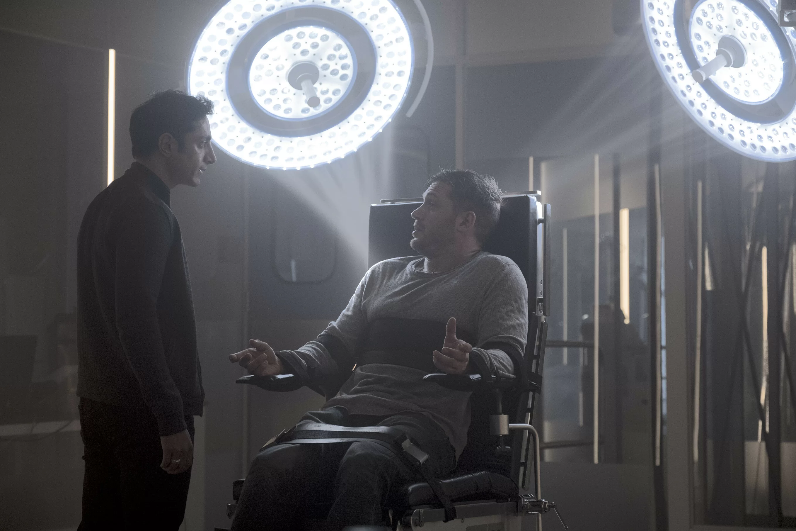 2. **Особый костюм Венома**: Вместо традиционного костюма и грима, Веном был создан с помощью передовых технологий CGI. Том Харди носил специальный костюм захвата движения, чтобы его игра могла быть перенесена в компьютерную модель, создавая реалистичную анимацию симбиота. Это позволило актерам взаимодействовать с реальным Харди на съемочной площадке, что добавляло сценам глубину.
